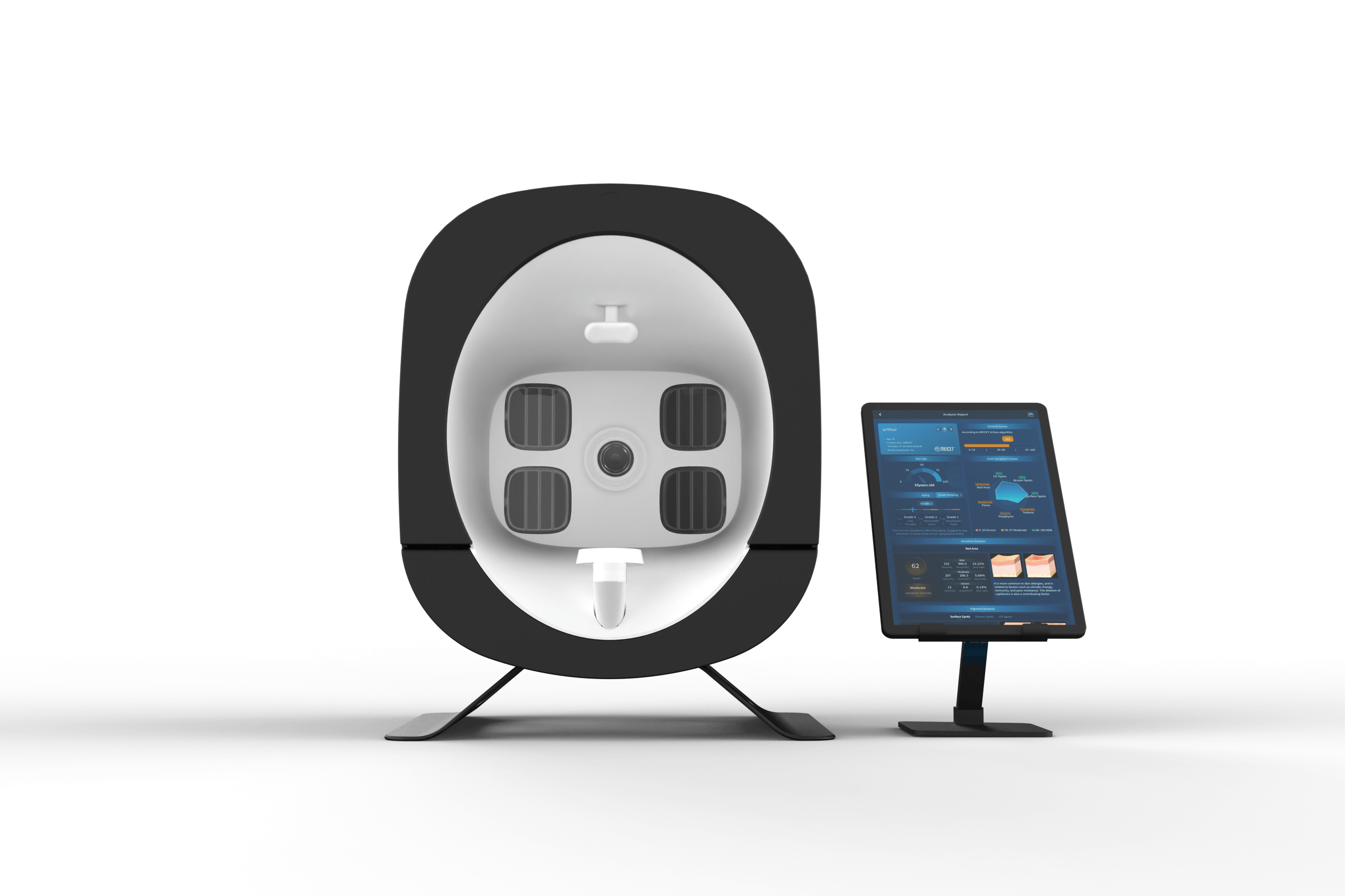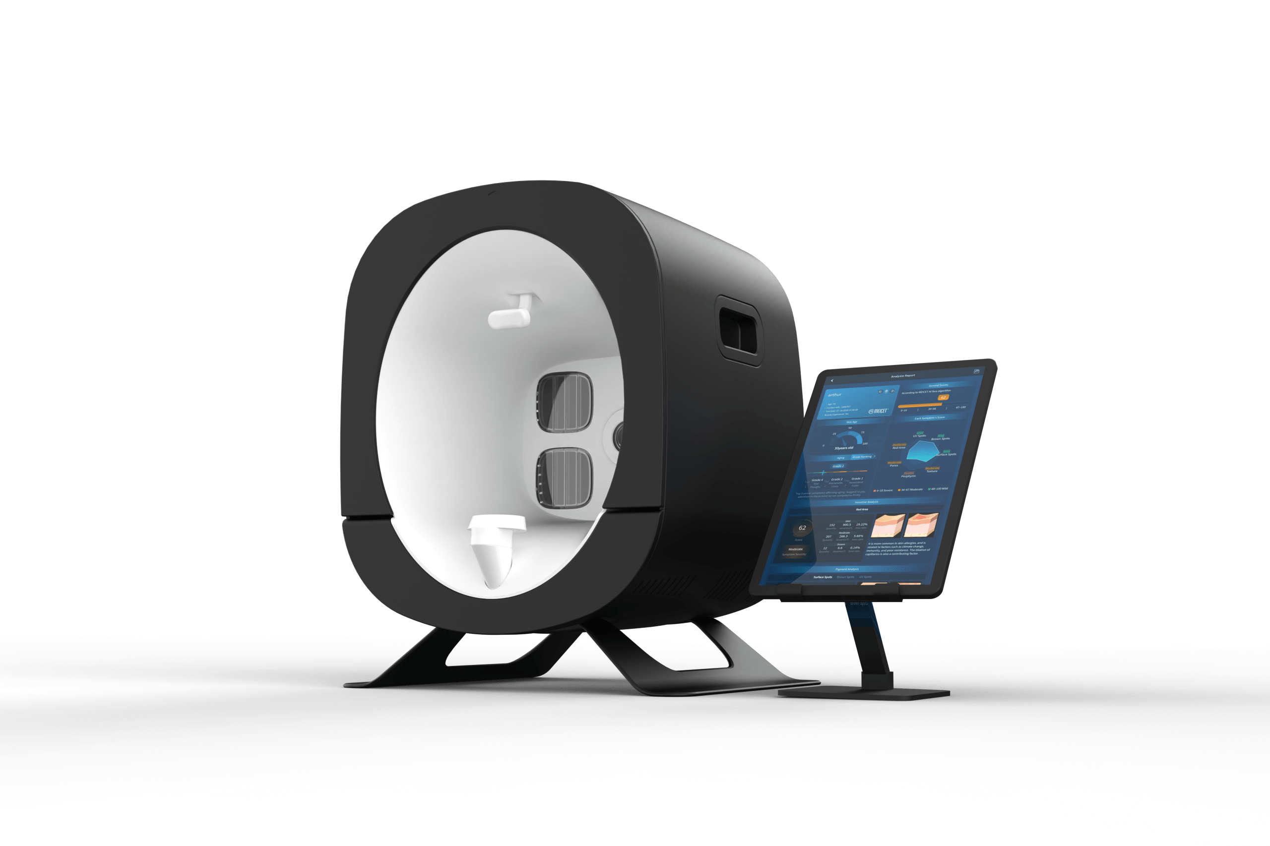 • Generación de informes personalizados con puntuación de piel, edad cutánea y análisis AI.