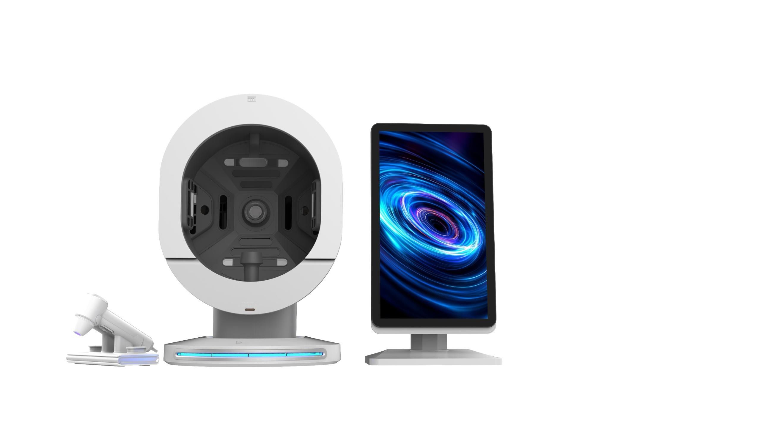 El equipo incorpora una pantalla gigante de 20.5 pulgadas, dos modos de prueba de piel, tres modos de informes y tres modos de análisis comparativo. Además, cuenta con un sistema de almacenamiento en la nube, gestión de archivos, panel de administración del sistema y plantillas de informes personalizadas. Funciona en 19 idiomas y se adapta a todos los tonos de piel a nivel global.