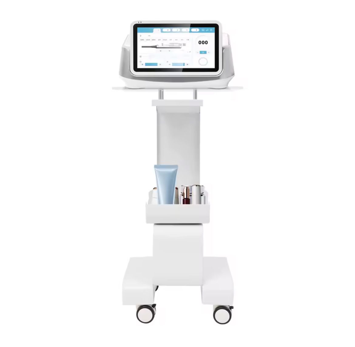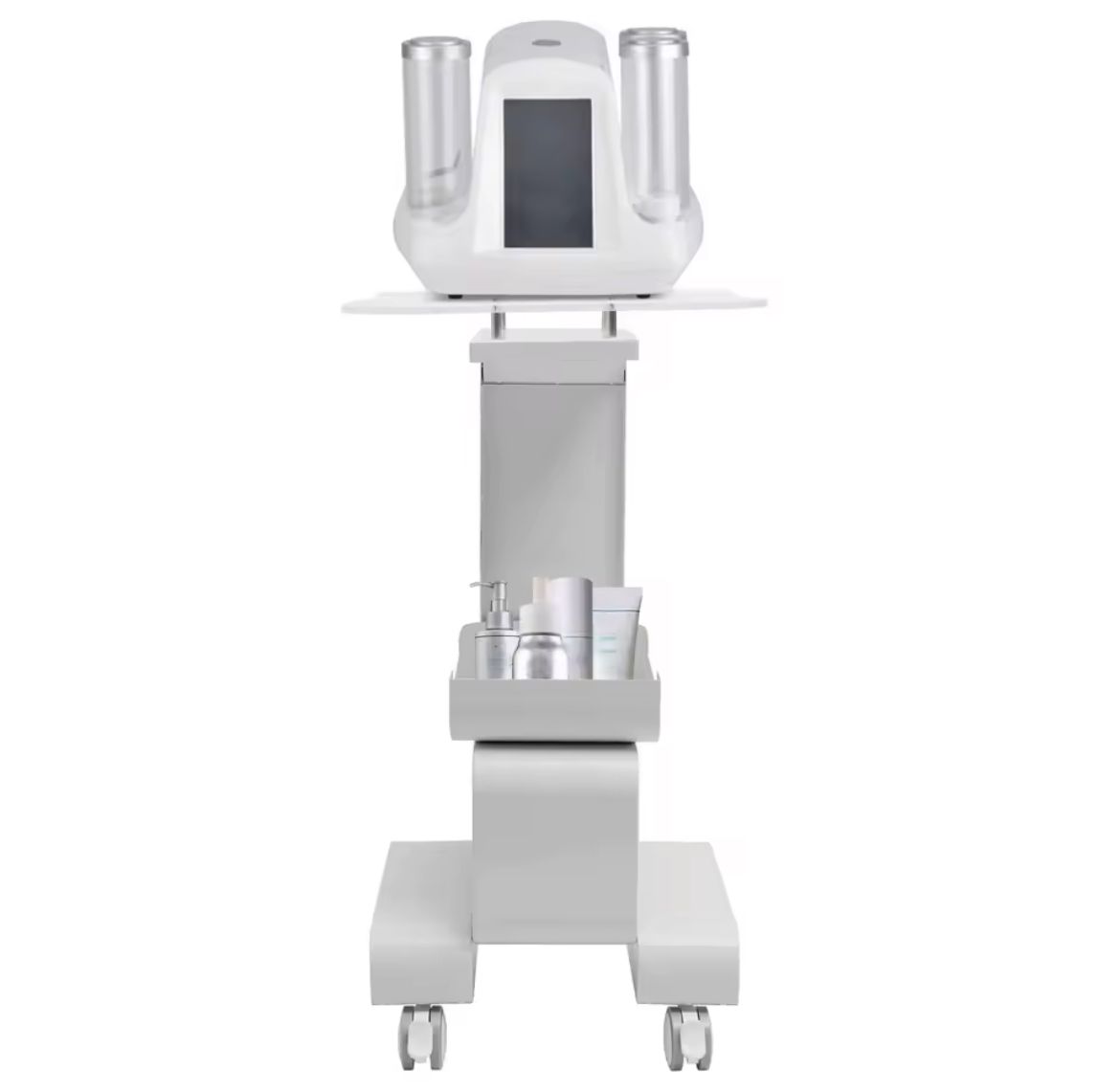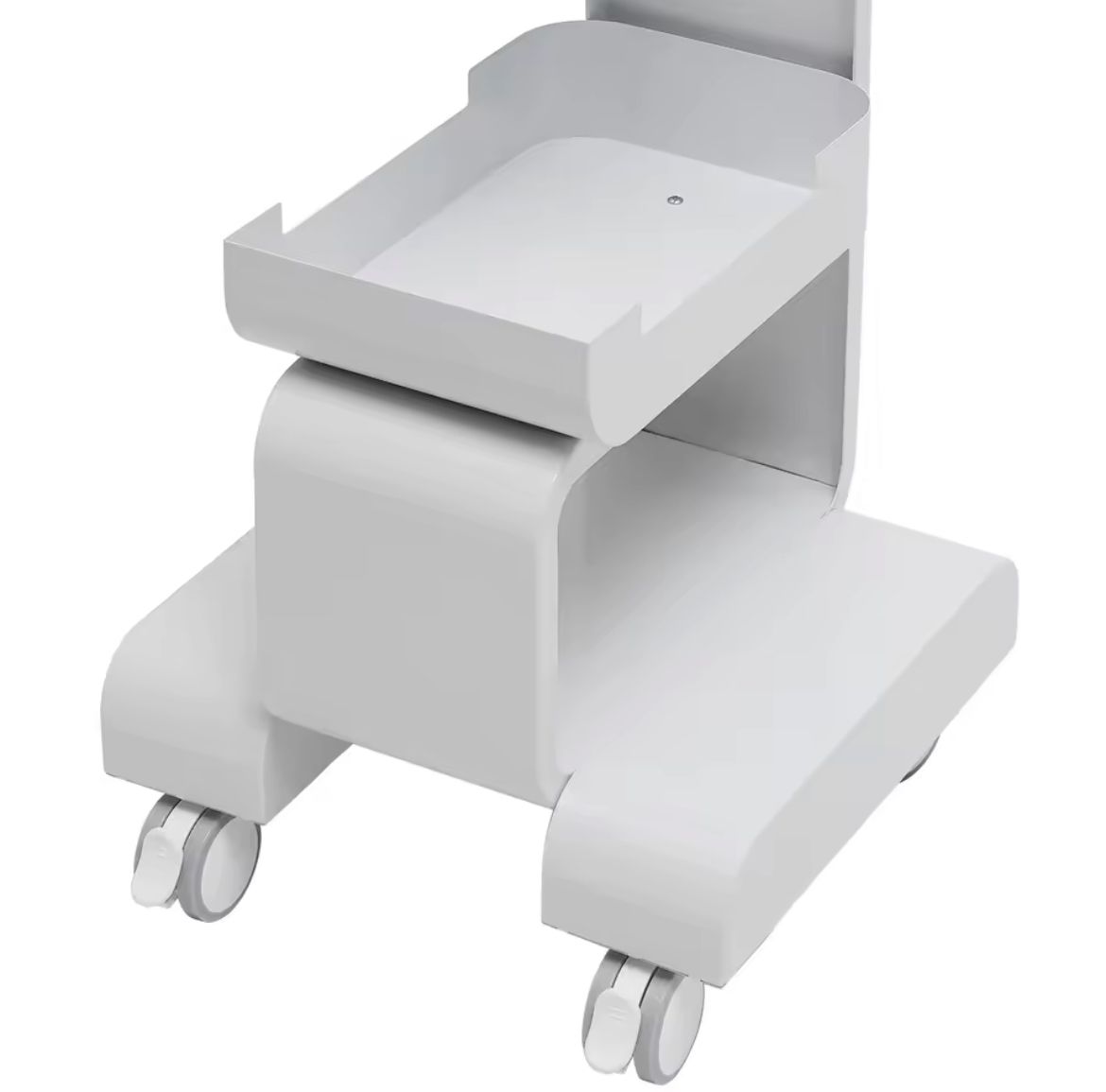 Carro profesional de estilo moderno, diseñado para soportar equipos de estética, belleza y medicina estética. Fabricado en metal y acrílico de alta resistencia, con estantes amplios y ruedas silenciosas que facilitan el movimiento en clínicas, salones de belleza y spas.