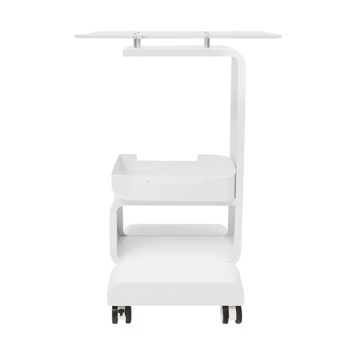 Este carro de estética ofrece una solución práctica y resistente para colocar y transportar aparatos de belleza y herramientas de trabajo.