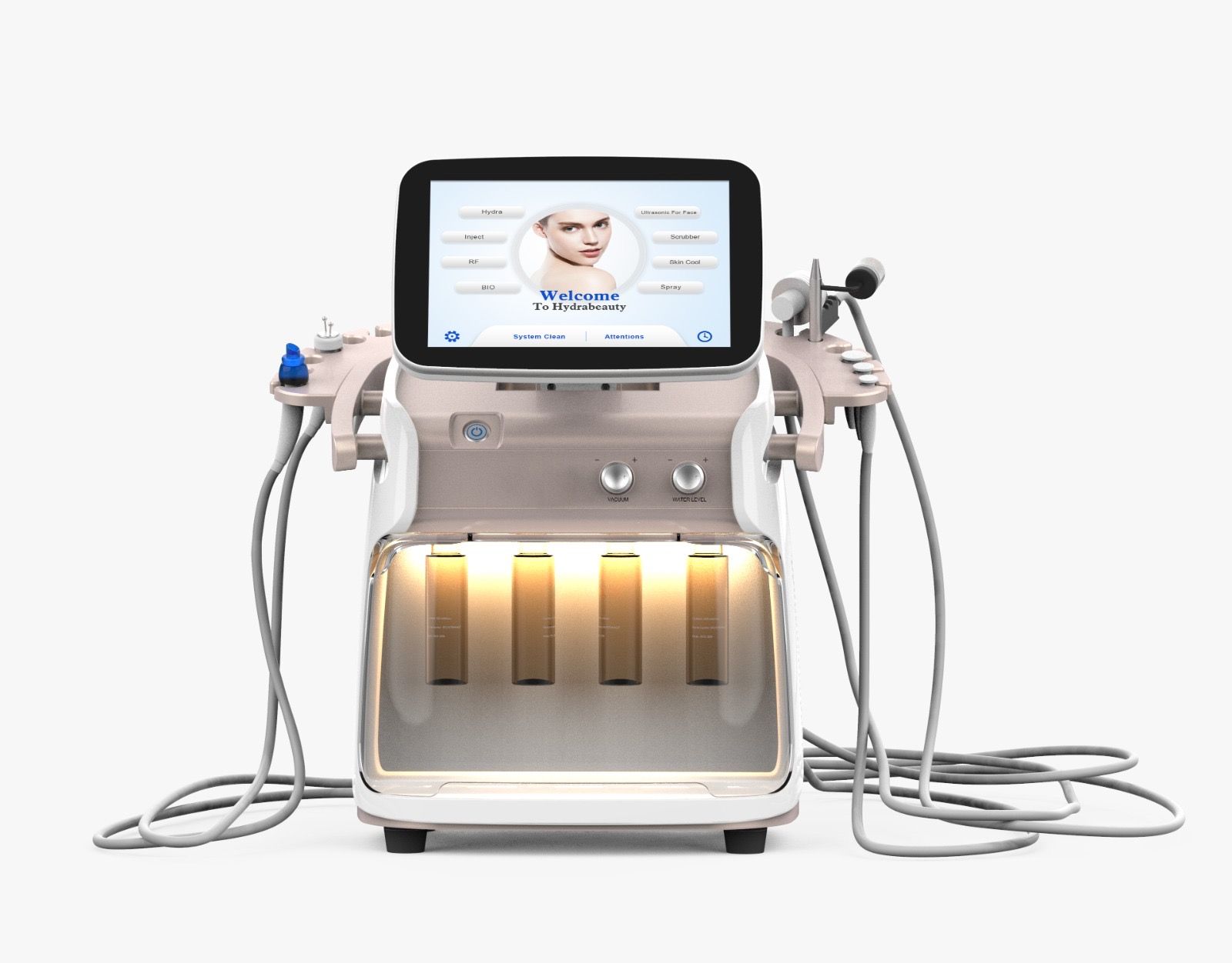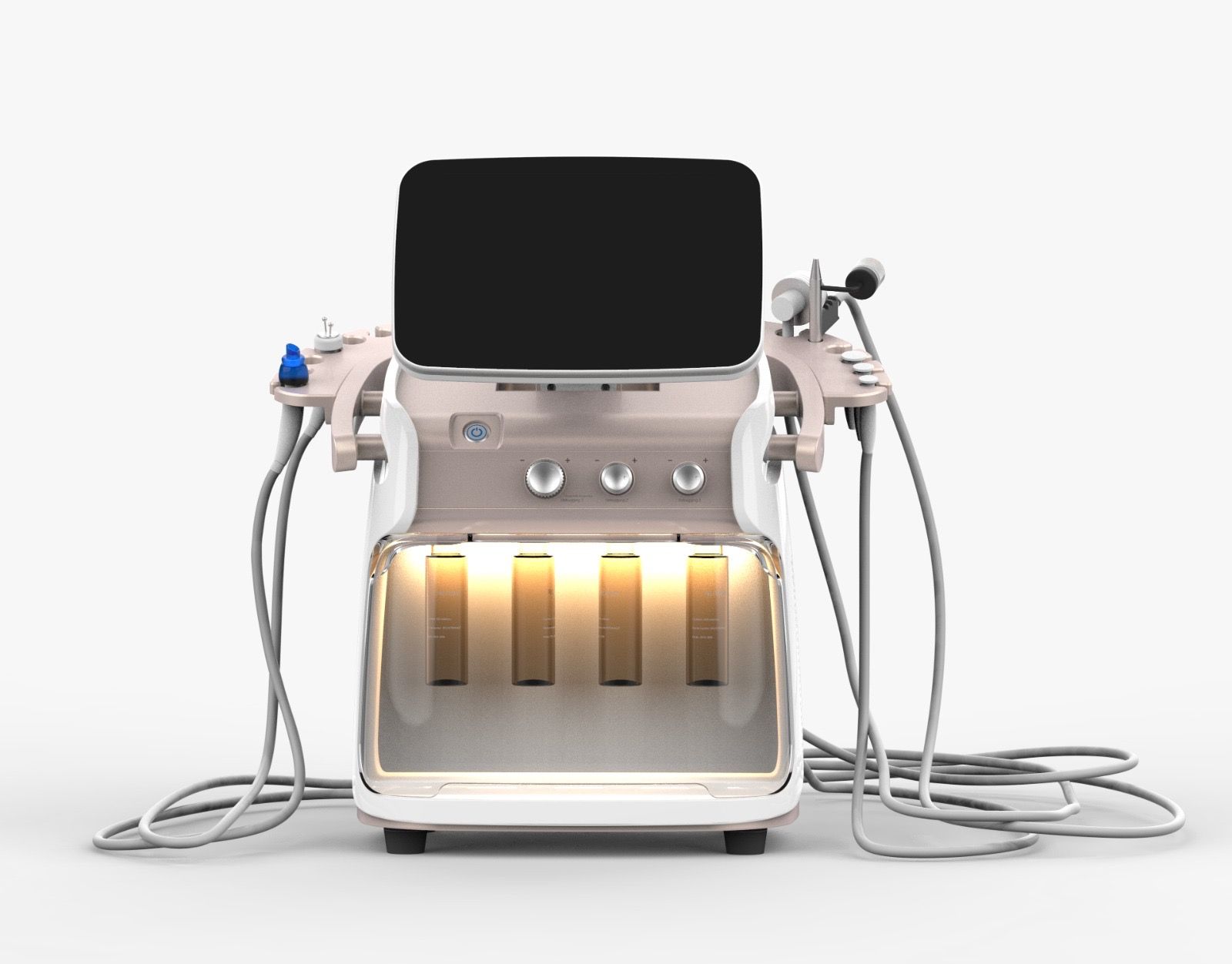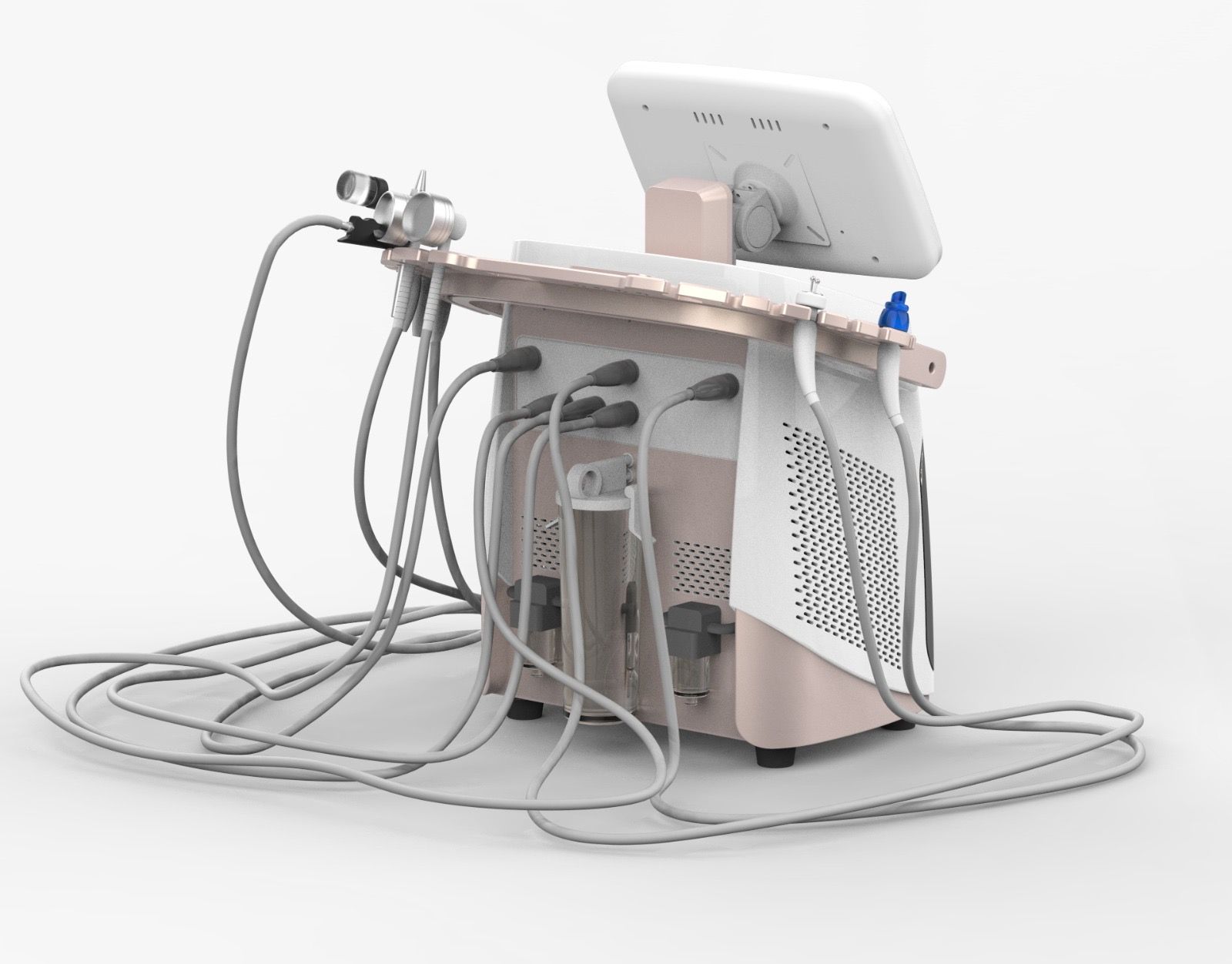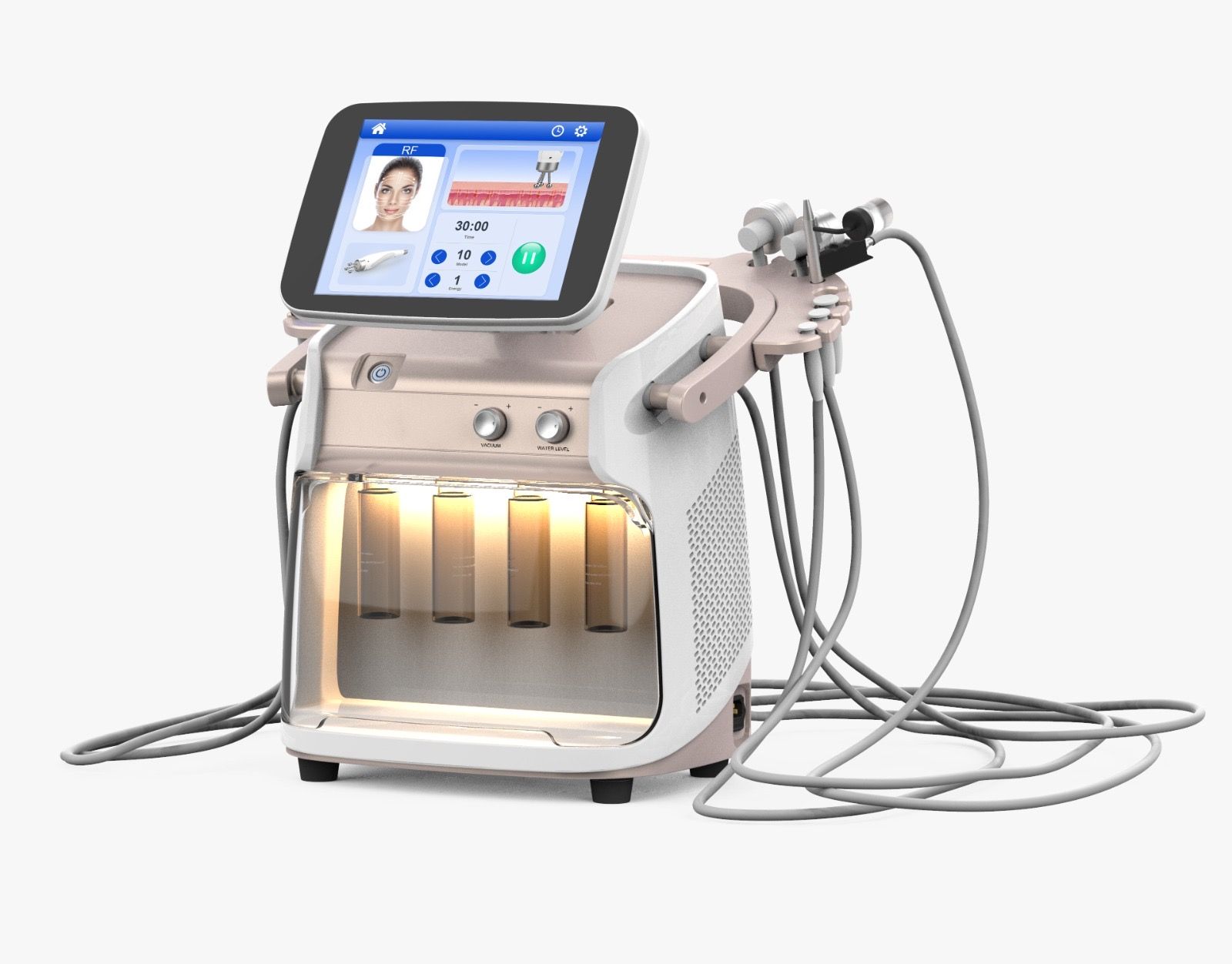 Este sistema combina hidrodermoabrasión, radiofrecuencia, microcorrientes bioeléctricas, ultrasonido, oxigenoterapia, fototerapia LED, peeling por presión y otras tecnologías orientadas al rejuvenecimiento facial, la mejora de la textura cutánea, la eliminación de impurezas, acné, manchas, flacidez y deshidratación.